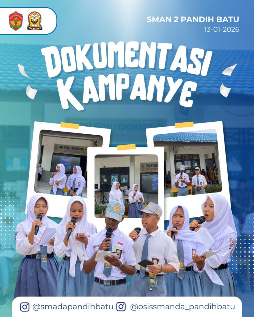 Hari ini, kampanye final Pemilihan OSIS (Pemilos) berlangsung dengan cukup semangat dan antusiasme. Para kandidat telah siap menyampaikan pandangan mereka seputar “Penanganan Kebiasaan Membuang Sampah Sembarangan”. Sebelumnya mereka telah menyampaikan Visi, Misi, Serta Program Kerja yang ingin dilakukan untuk memimpin OSIS.